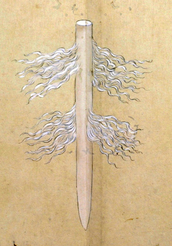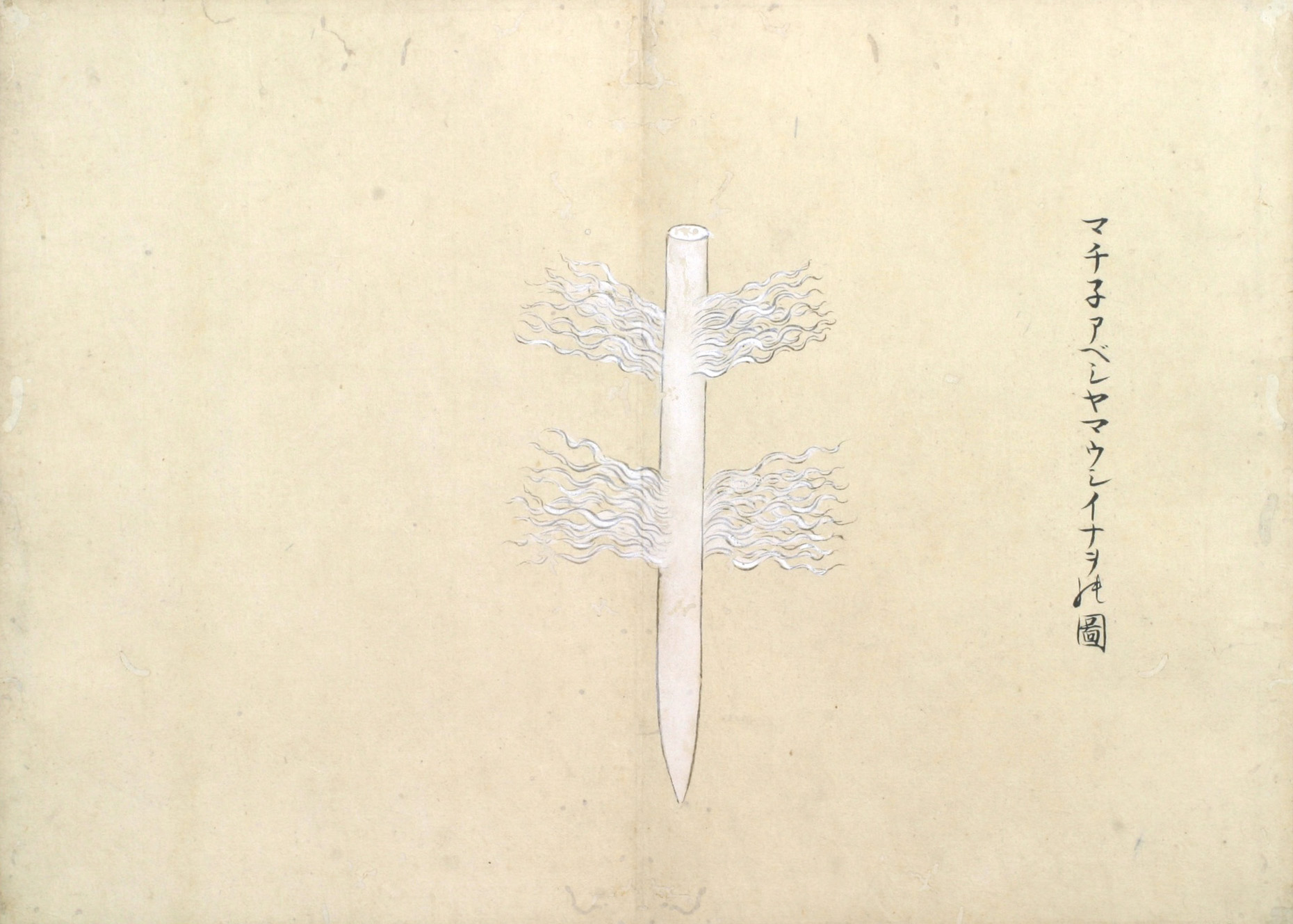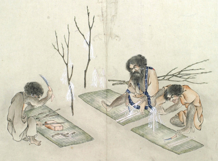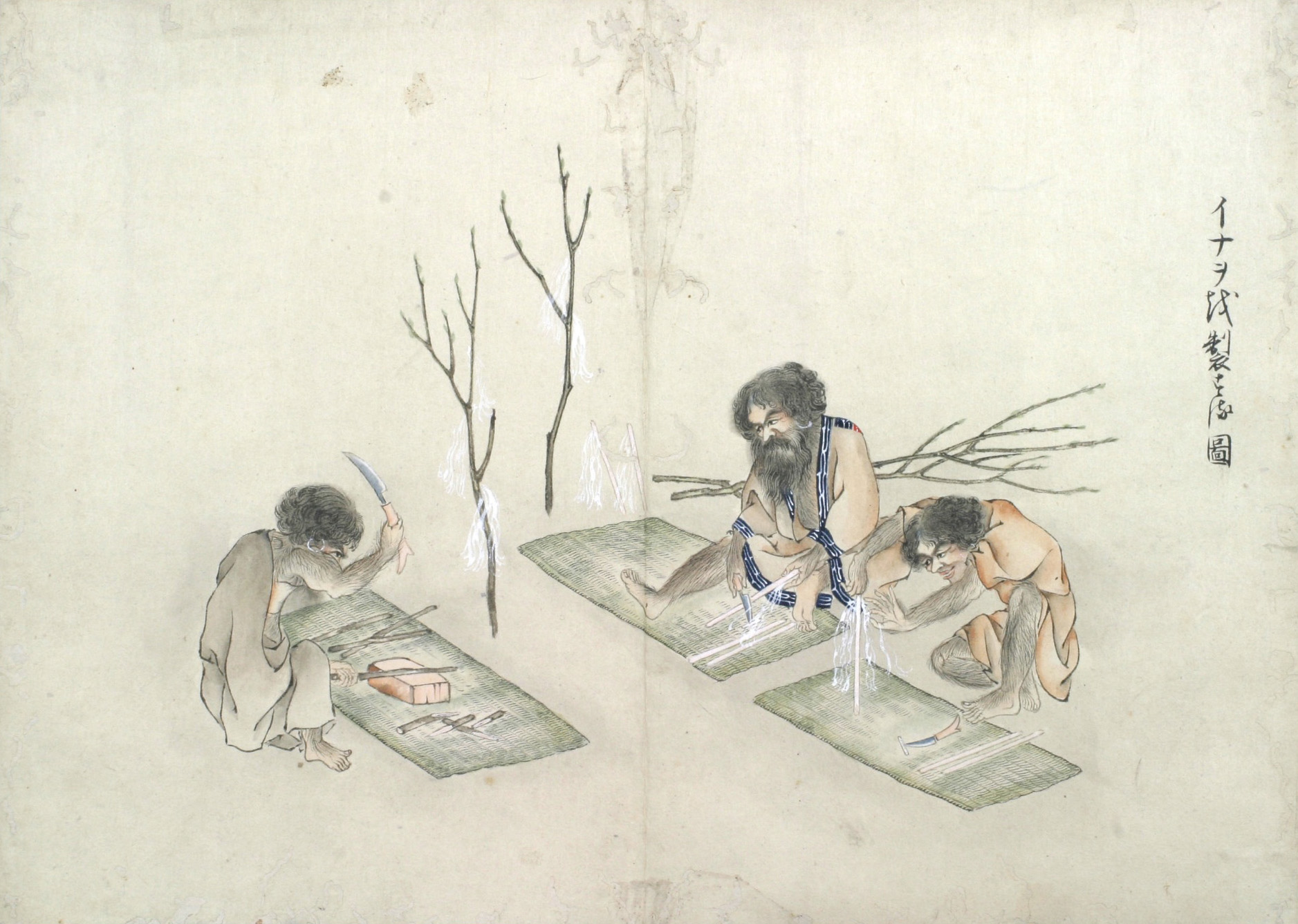 又ピンネアペシヤマウシイナヲと云事あり、この二はかならず火の神を祭るに用ゆるイナヲにして、男女のわかちあるに寄て、其かたち(かわ)れるなり。