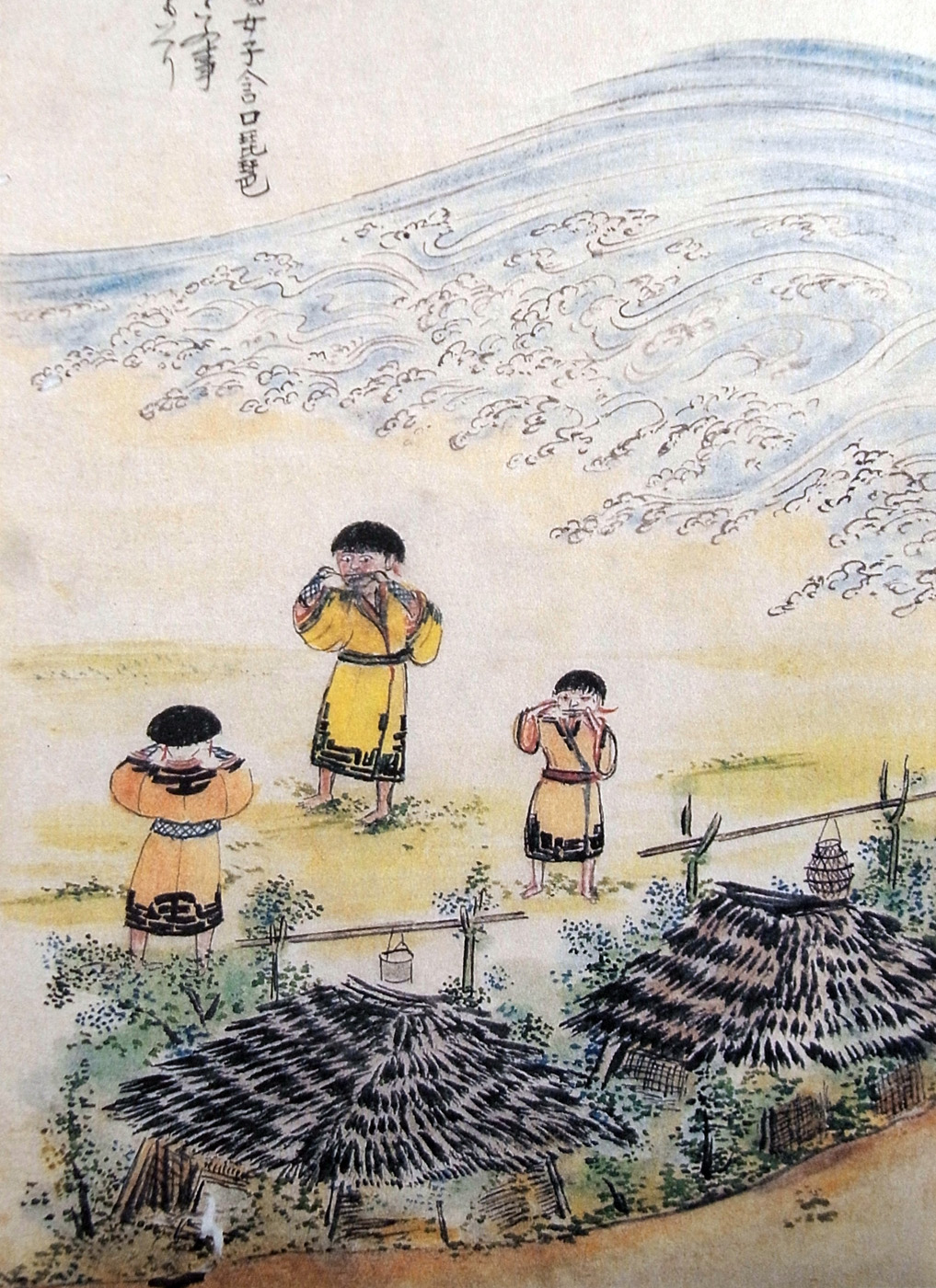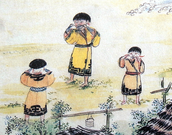 こは、いかなる音なひかといへば、あるじ、シャモは口琵琶といひ、アヰノは是をムクンリといひて、五六寸ばかり網鍼のごとく、竹にて作りたるものなり。