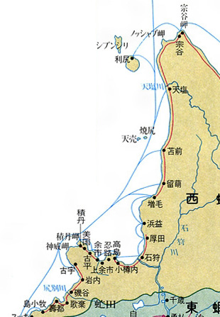 十日路も登りて夷人を集め、春鯡漁中はトママイ(苫前) 地名 持ヤンケシリ(焼尻島)、テヲレシリ(天賣島)といふ小嶋二嶋あり、此しまへ出稼す。
