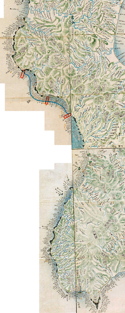 ほどなうふねつきたれば、くだりて久刀布(久遠郡大成村)といふ蝦夷の地に至る。