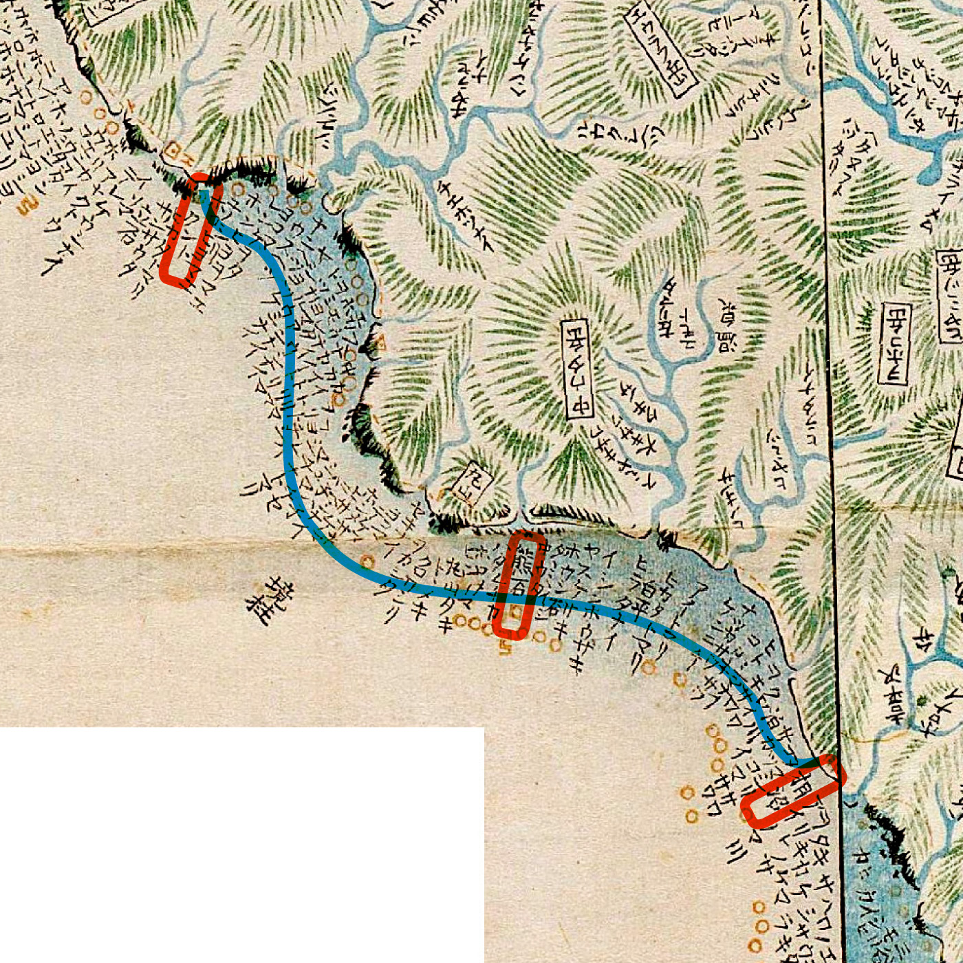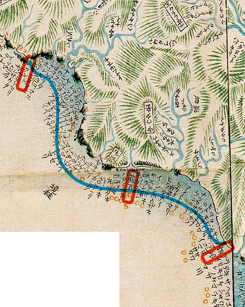 このあたりよりはもはら運上屋とて、うなのものとりをさむる、さぶらひやうの屋形をたてて、そのゑだちの人も、こと人もすみ、アヰノの栖家も、軒ならびて入まじりたり。