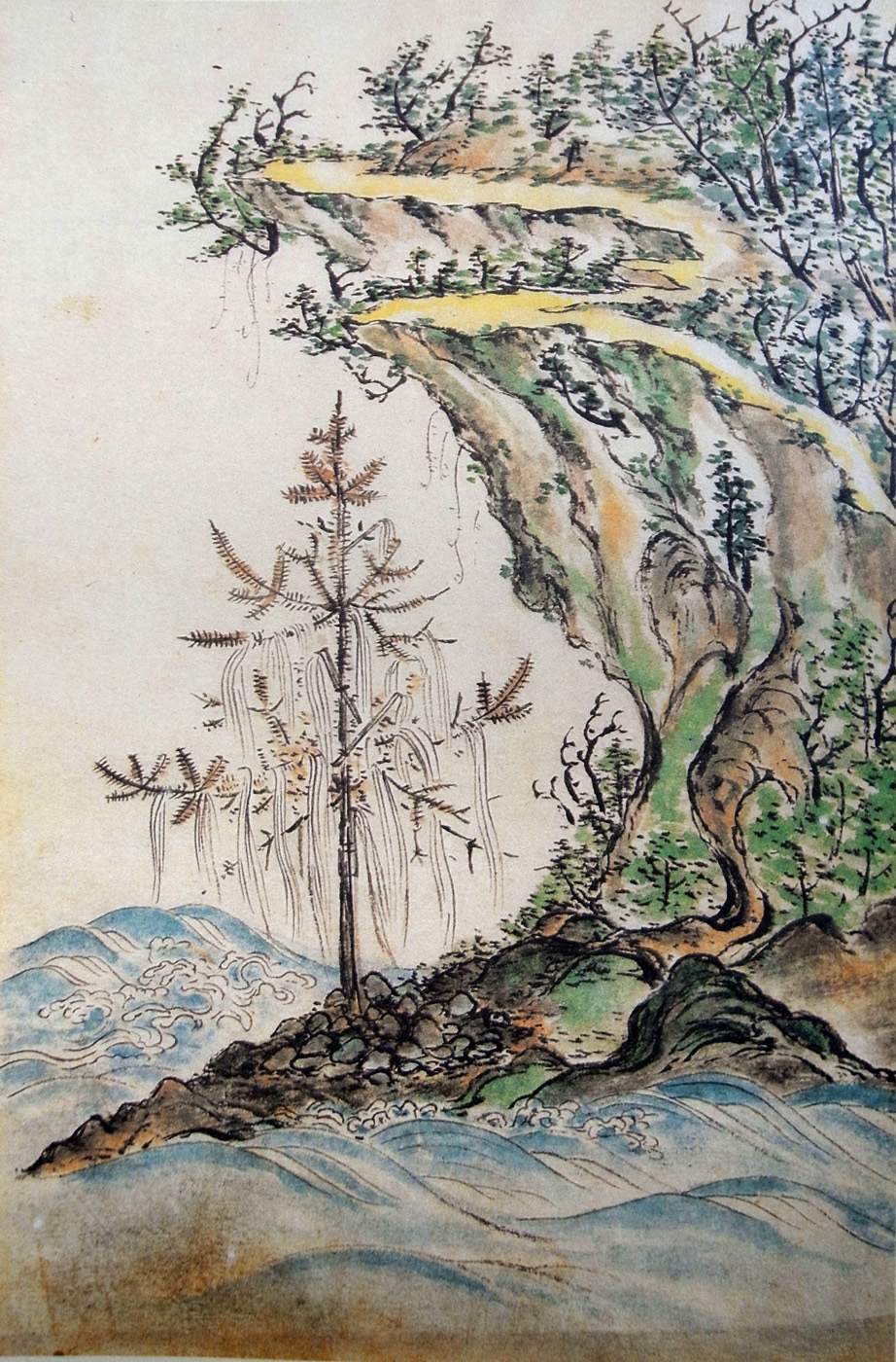 とどろふの木(トドマツ)を伐て枝ながら岩の出崎におし立て、為那乎とて、木を麻苧の糸のやうにけづりてて、ゆふ(木綿)のごとくとりかけたるは、