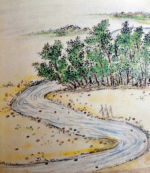 「蝦夷舎村に木棹をよこたふ