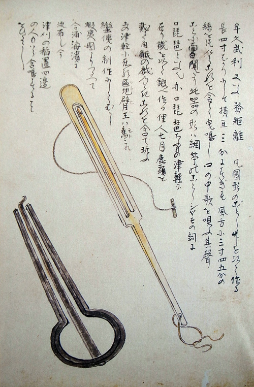 こは、いかなる音なひかといへば、あるじ、シャモは口琵琶といひ、アヰノは是をムクンリといひて、五六寸ばかりの網鍼のごとく、竹にて作りたるものなり。