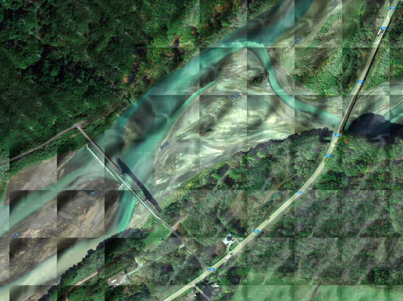 左が沙流川,右が額平川 (この上に架かっている橋は,額平橋)