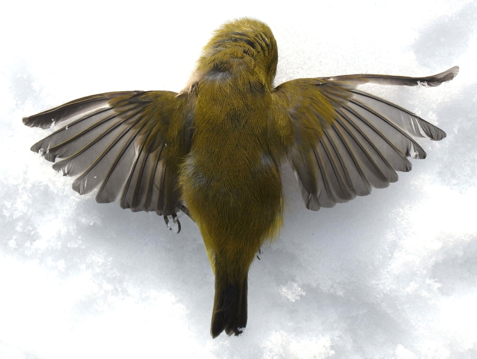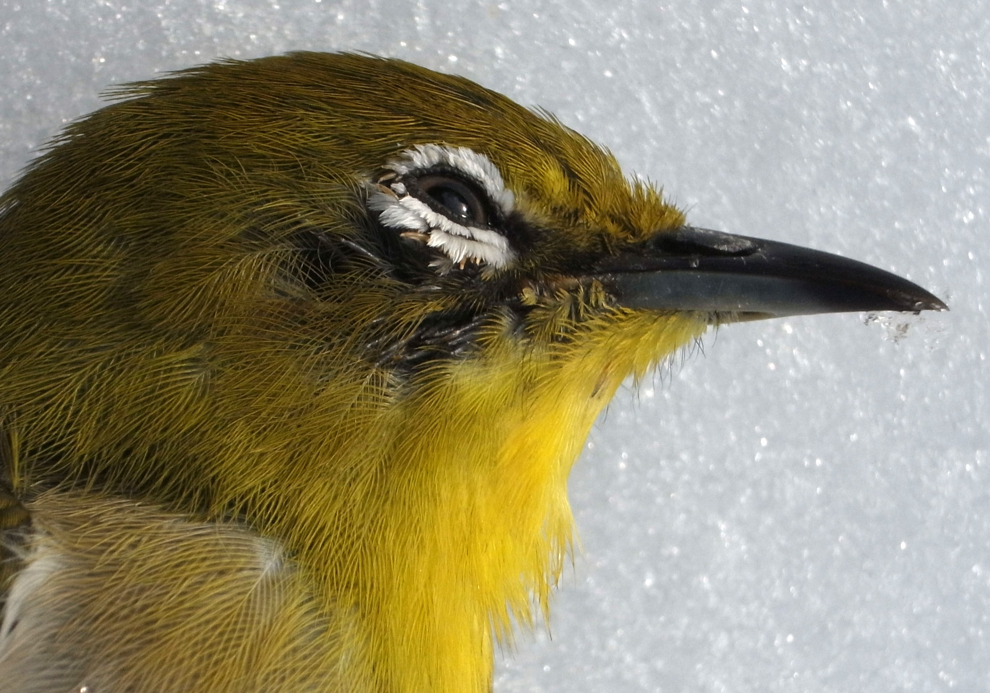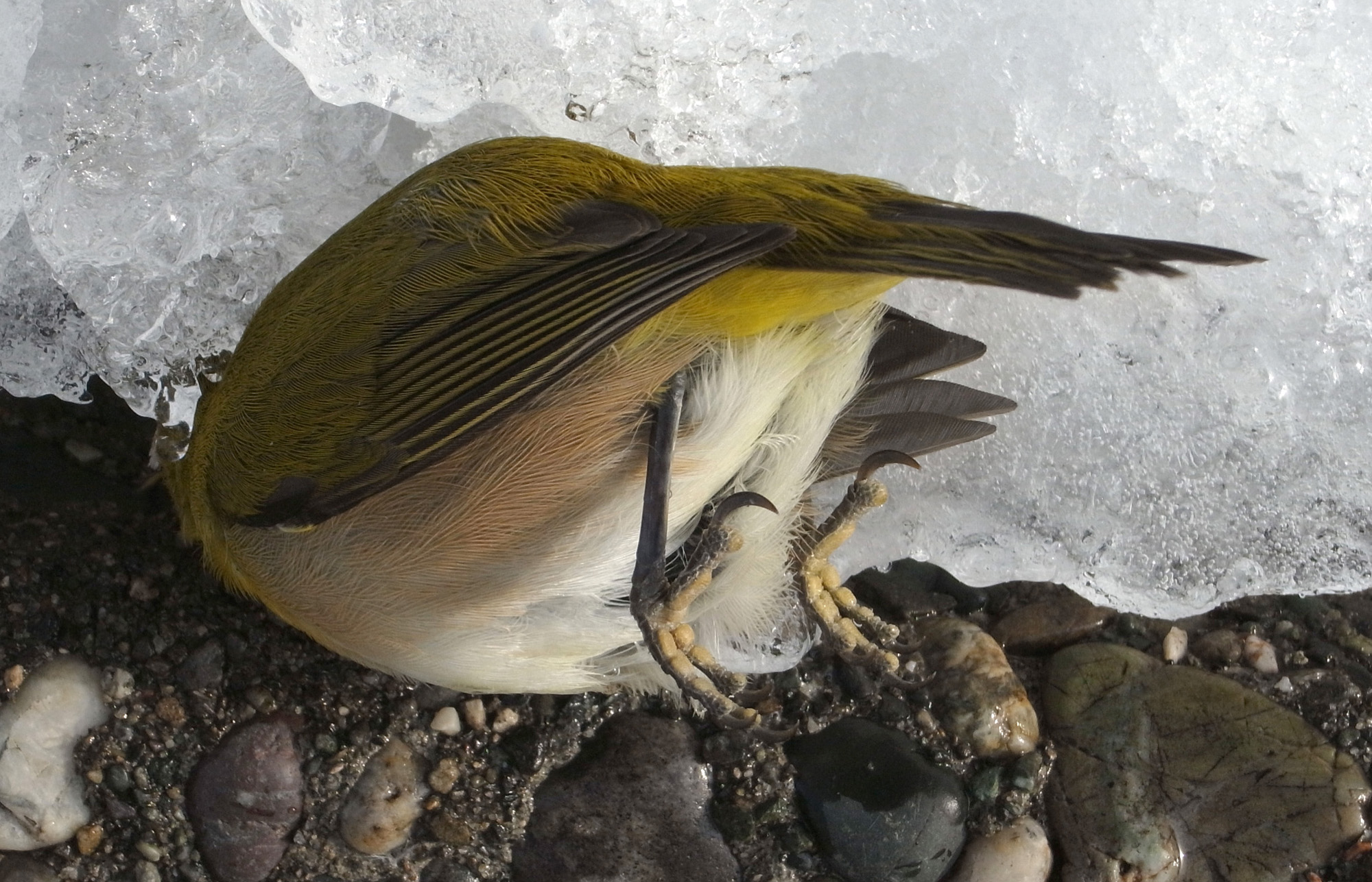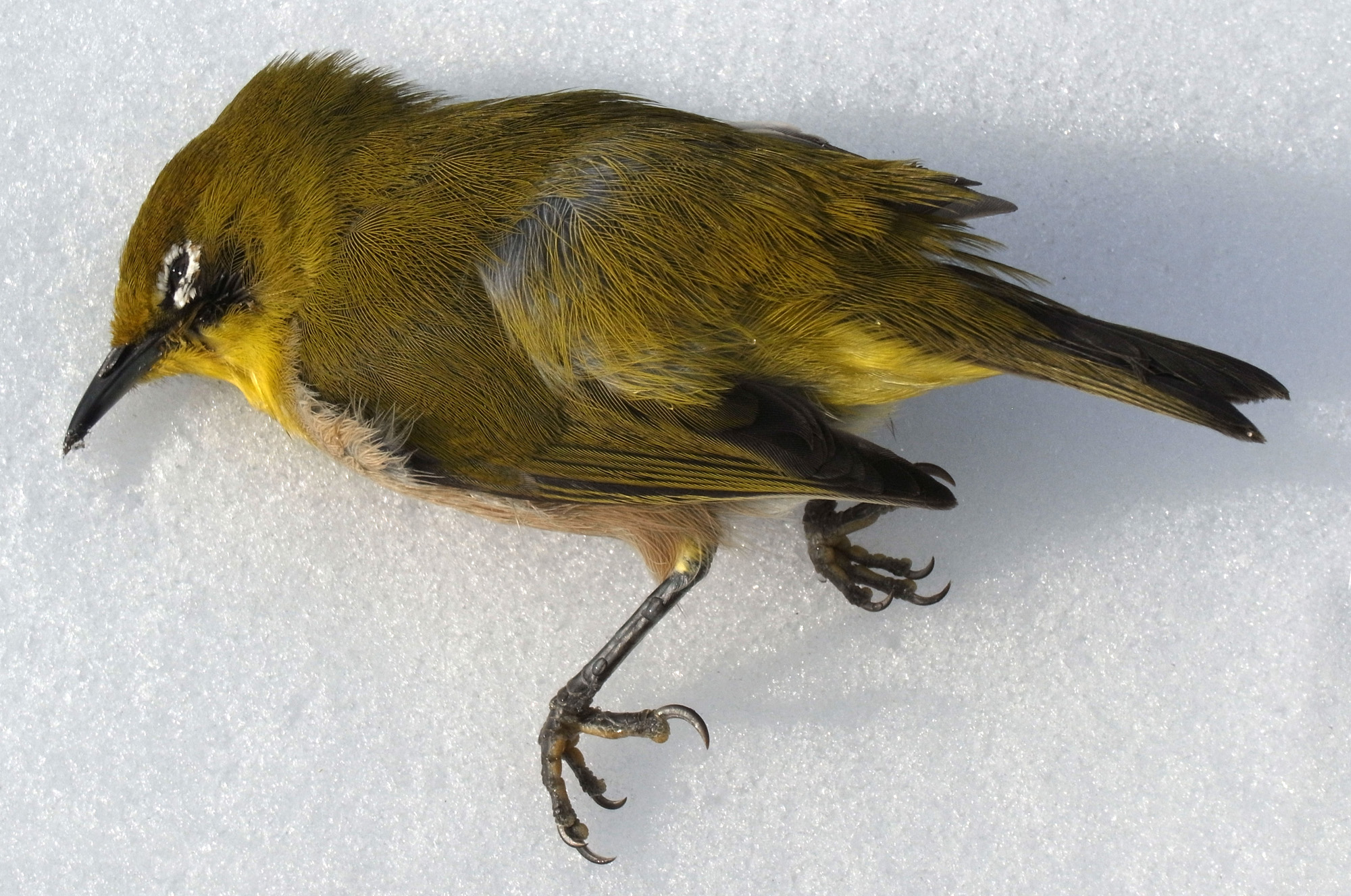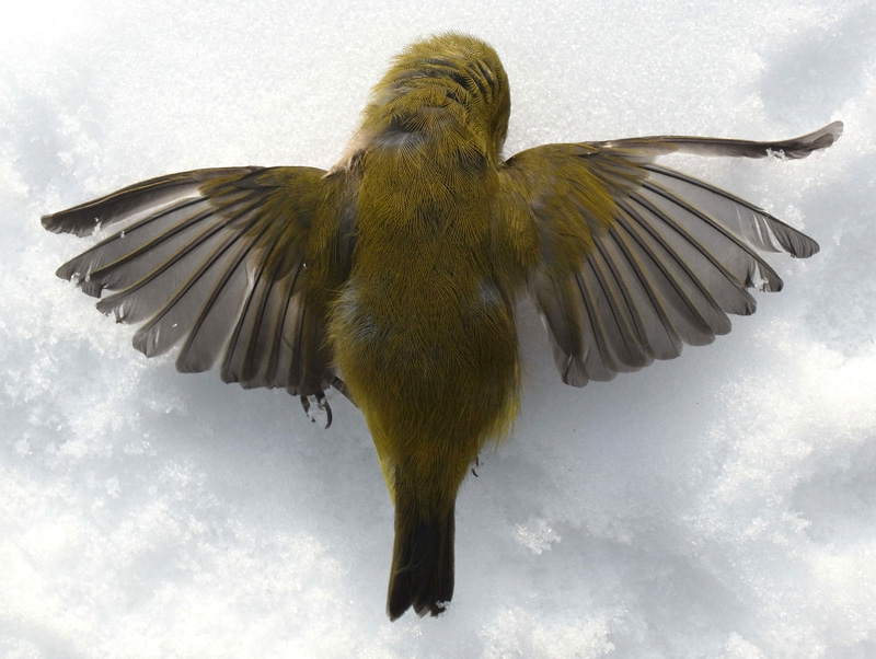 メジロが,窓にぶつかって往生。