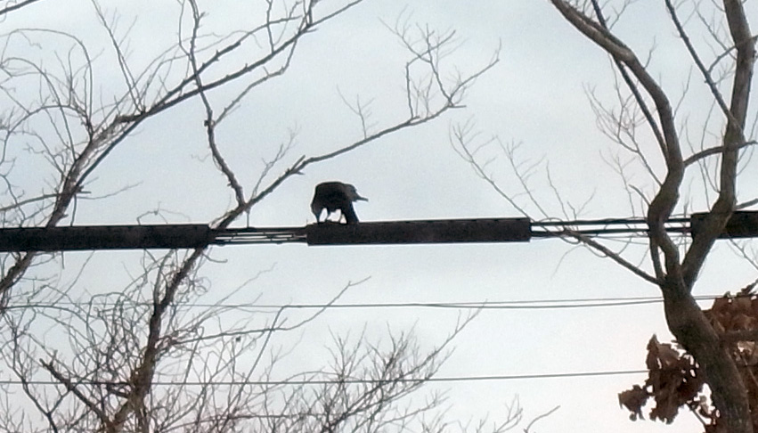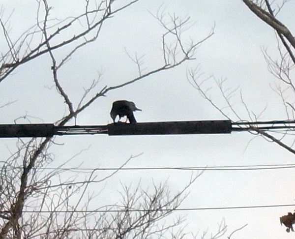 ♂が,死体を嘴にくわえて電線まで運び,そこで食す