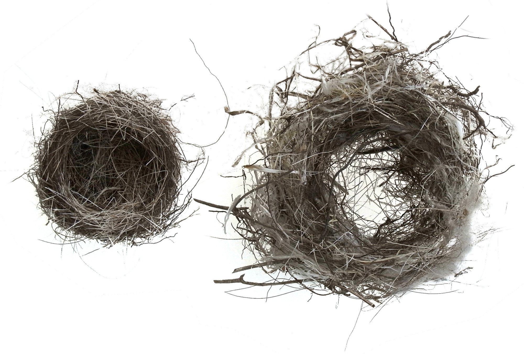 小さい方は,これの編み方から判ずるに,人が籠をつくるみたいに色んな向きにひっくり返して編んでいるのでは?