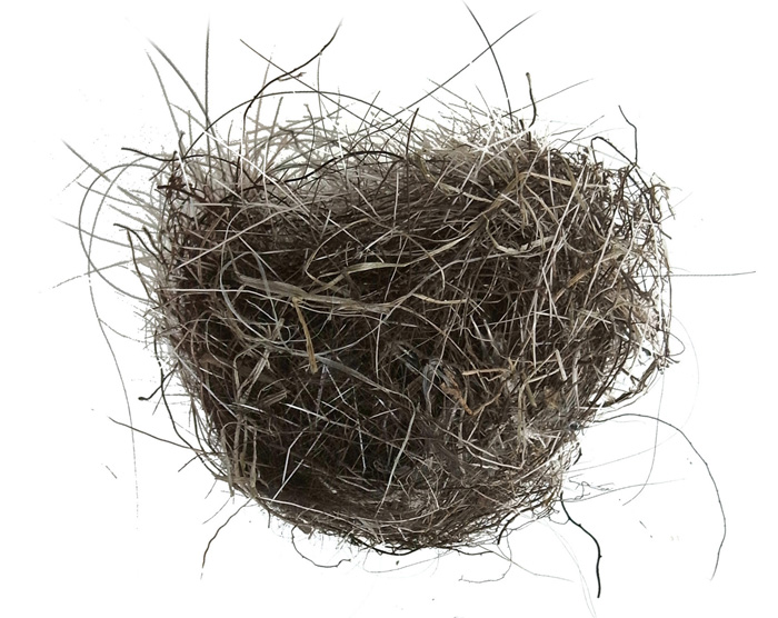 庭にスズメの巣(?) が落ちていた。