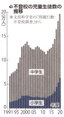1974年に調査を開始して以来、最多となり、文科省は「家庭で居場所のない子供たちの救いの場になっていた学校がコロナ禍で休校になり、行事も中止や延期になった影響もある」とみている。
