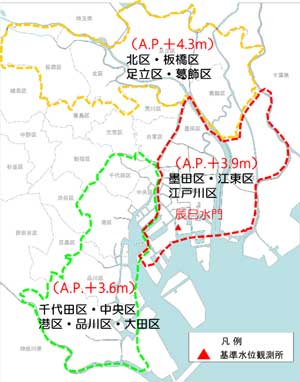 そこで東京都は,高潮氾濫危険水位を定めている: