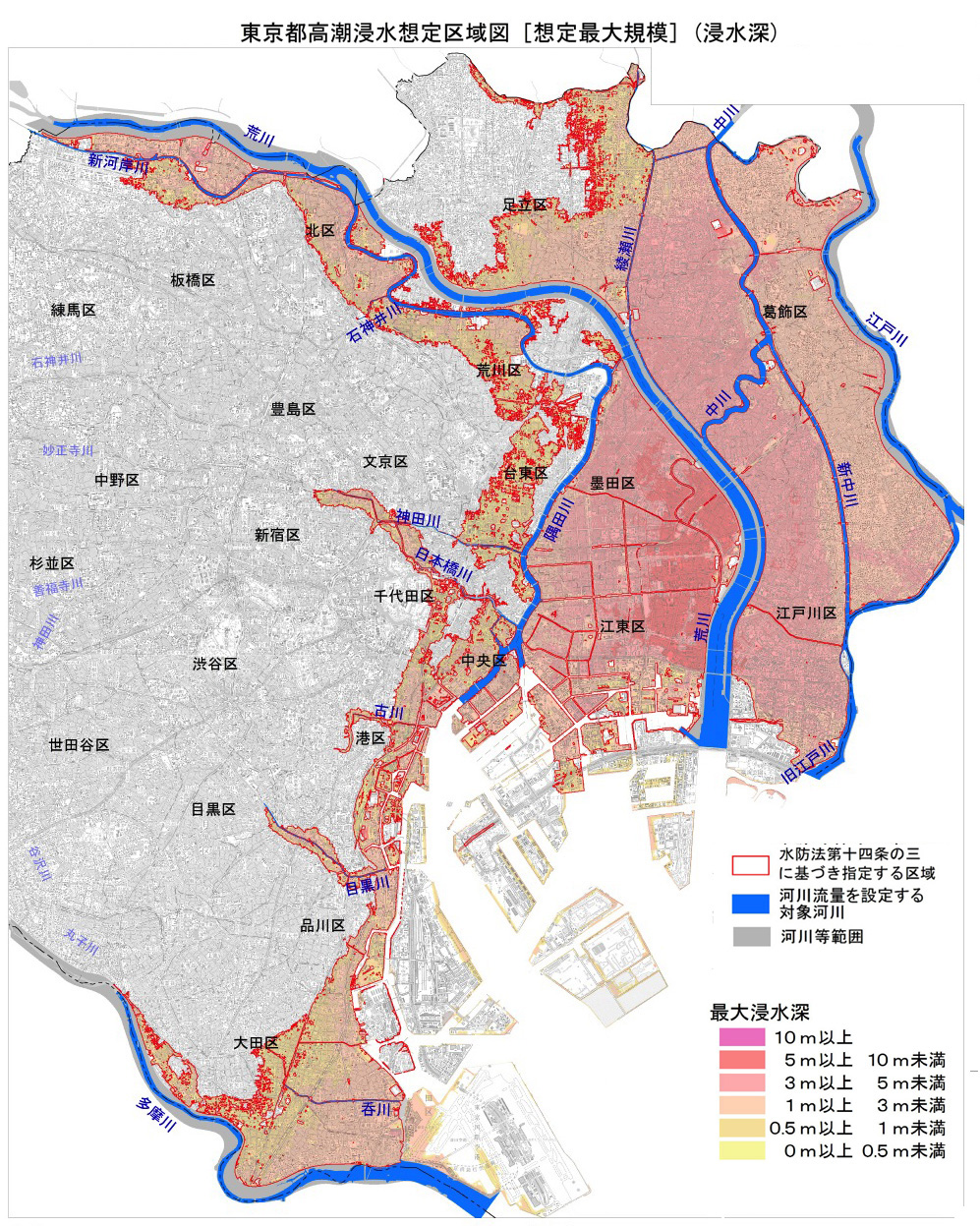 東京都港湾局「高潮浸水想定区域図 [想定最大規模] (浸水深)」