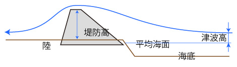 しかし津波は,「津波高」より高い防潮堤を越える。