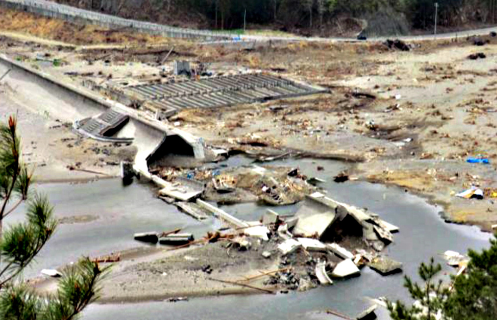 さらに,防潮堤を越える流れは,防潮堤を壊していく。
