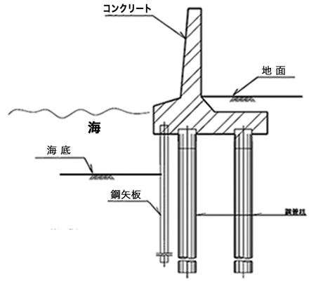 自立矢板式防潮堤の写真・図面から引用