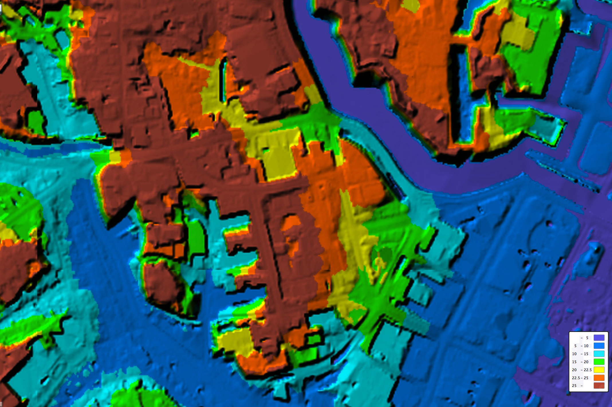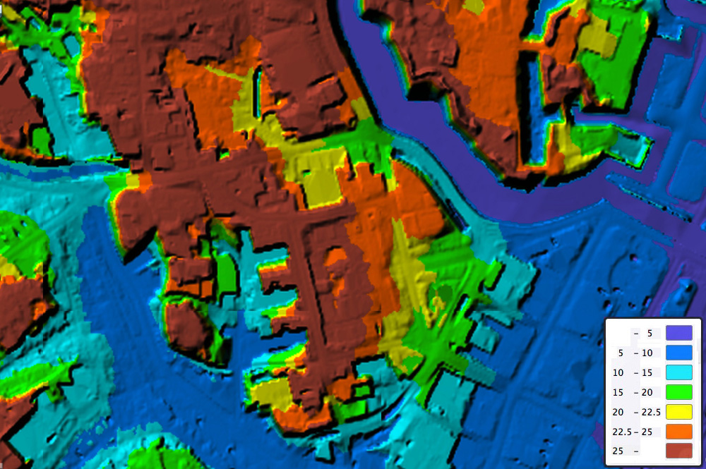 国立国会図書館の敷地は,リアス海岸の中の入り江のようになっている。 侵入してくる津波が高く盛り上がる地形である。 津波の水は,堀の水を嵩上げしつつ,図書館の北側の道路を西に流れる。 水は図書館の敷地に流れ込むとともに,図書館を囲む高台に阻まれて隆起する。 図書館は,この隆起した水のはね返りにも襲われる。 標高差をそのまま水の高さにすれば,それは5m の高さになる。 地上1階が被る高さである。 というわけで国立国会図書館は,高さ1m の浸水くらいは想定しておくことになる。 |