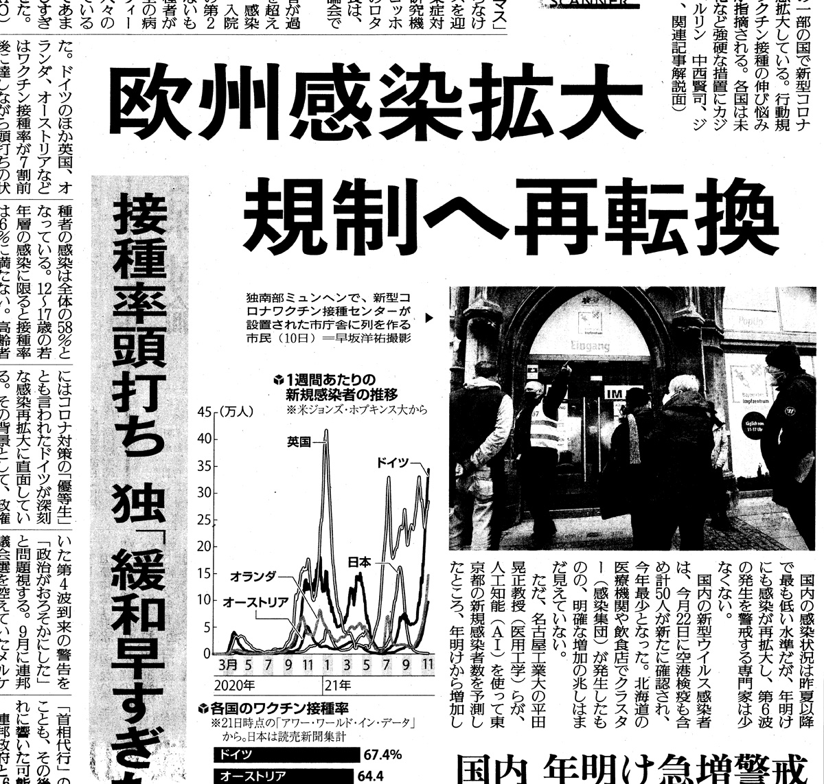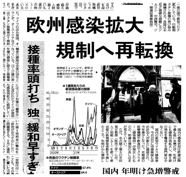 ‥‥ 第1波に見舞われた昨春にはコロナ対策の「優等生」とも言われたドイツが深刻な感染再拡大に直面している。‥‥