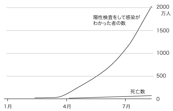 患者数で「1000万人を超える」ということは,感染者はこれよりずっと多いということである。 「亡くなった人は73万3897人に上っています」には,