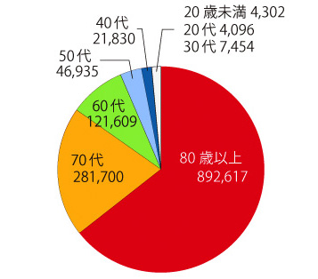 「年間死亡数 1,381,098 (138万人)」の年齢群別年間死亡数