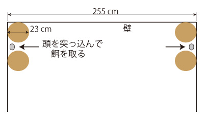 この置き方だと,♂♀の採餌は<一つの餌場にひとり>の形になる。 しかし,つぎのようなときがある: