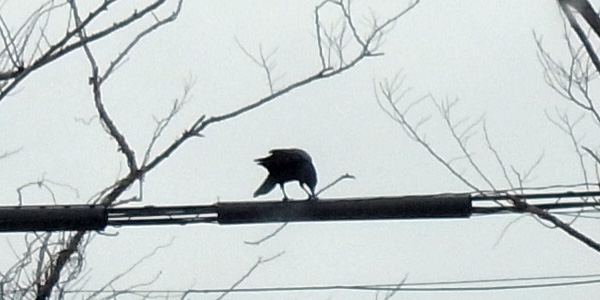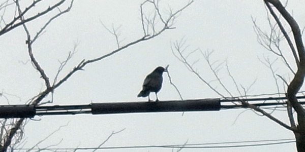 ♂が枝をくわえている──巣づくりが始まっているようだ: