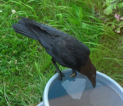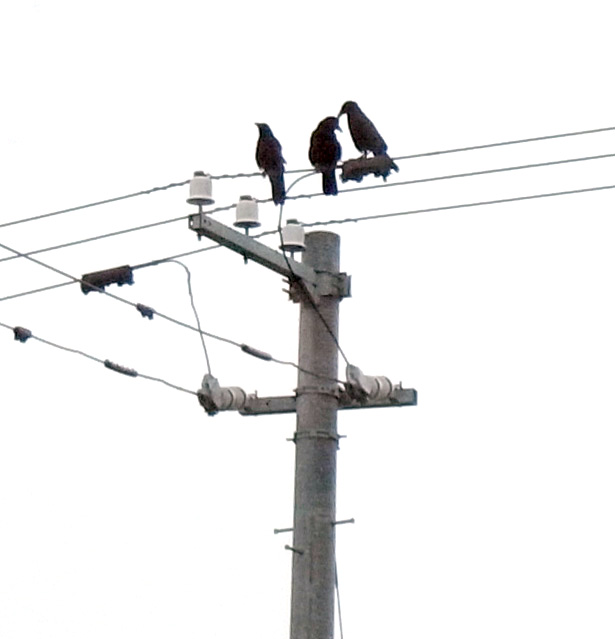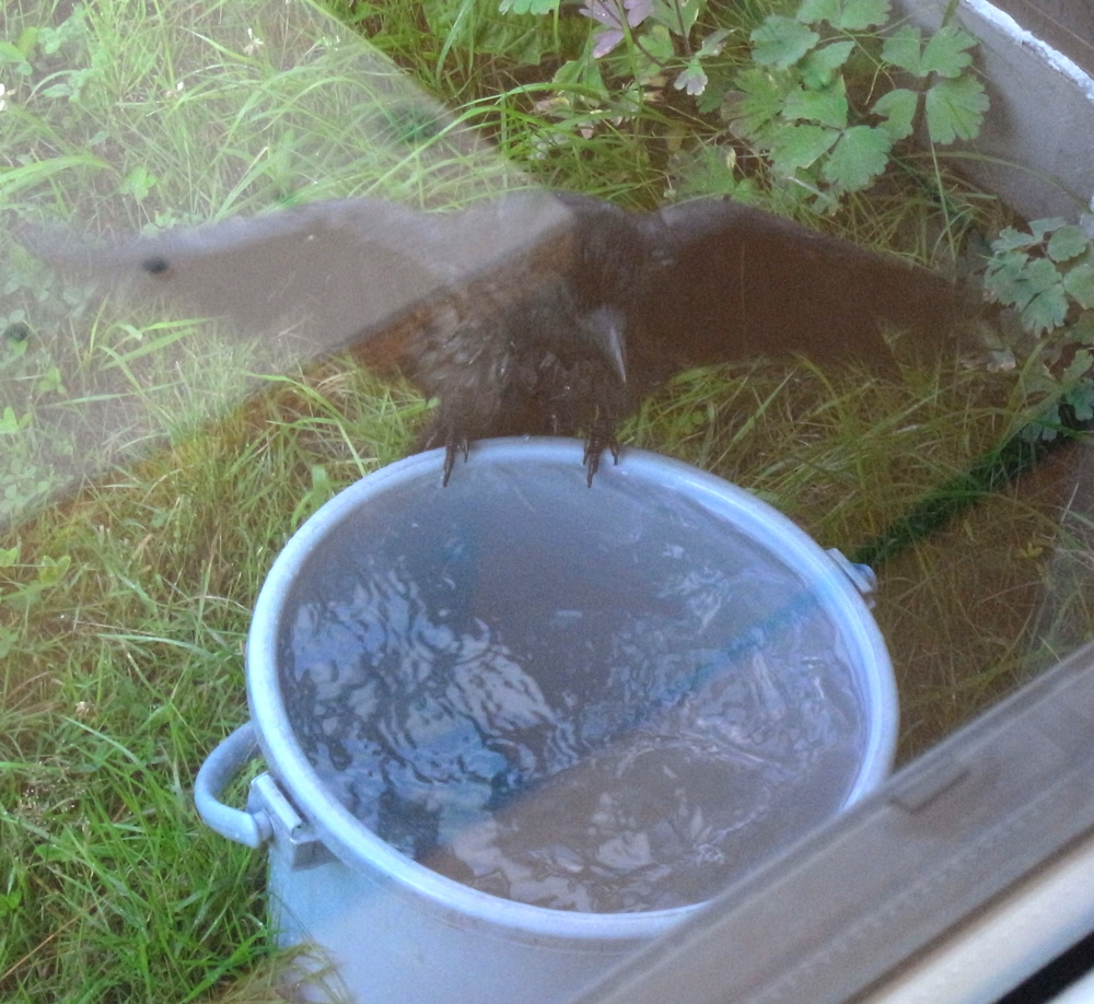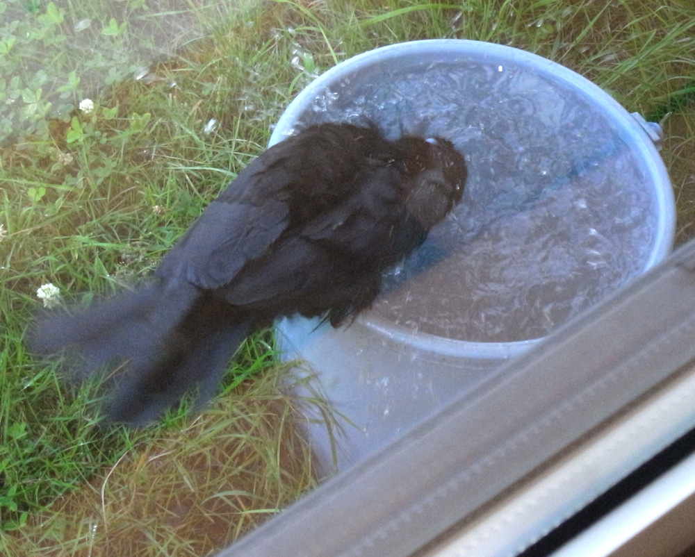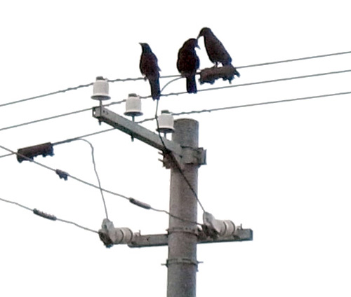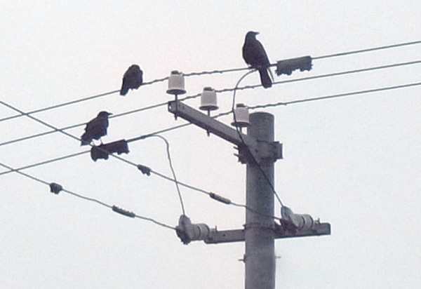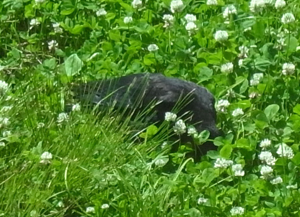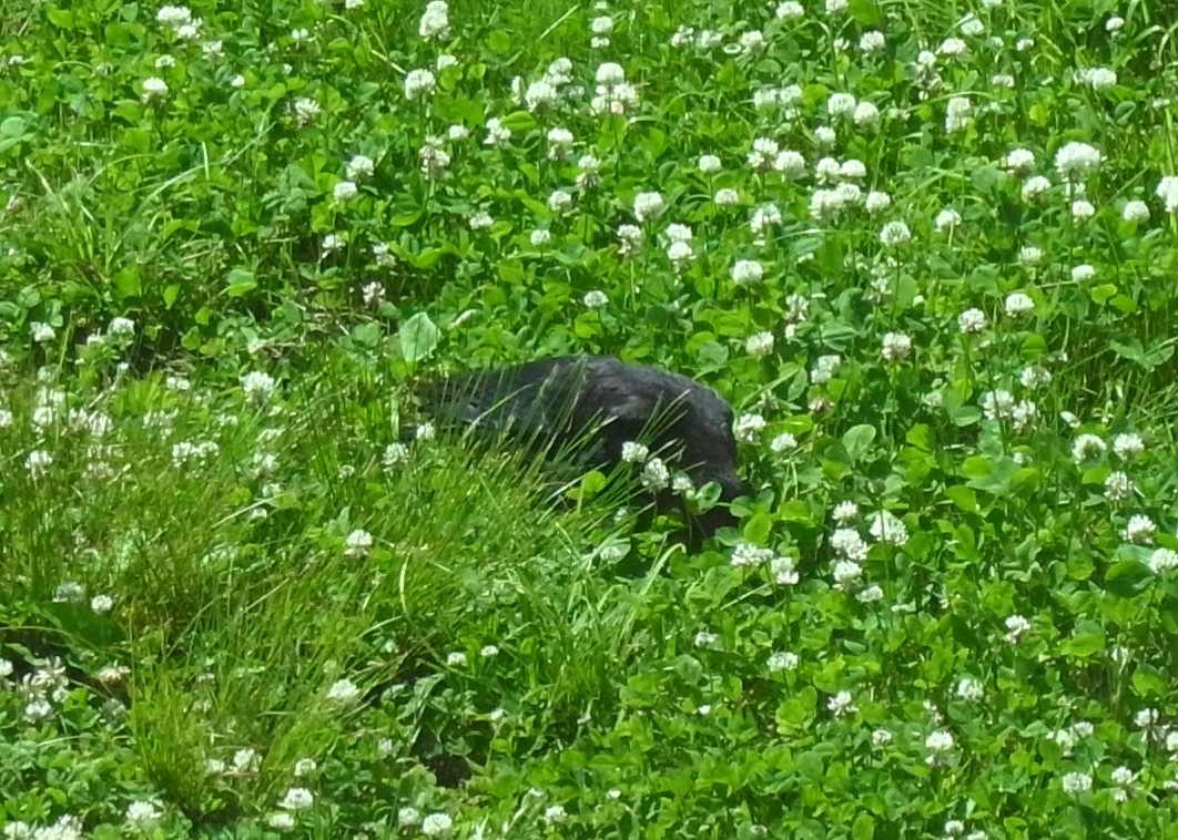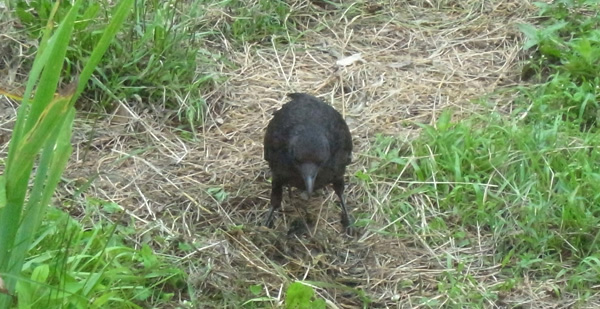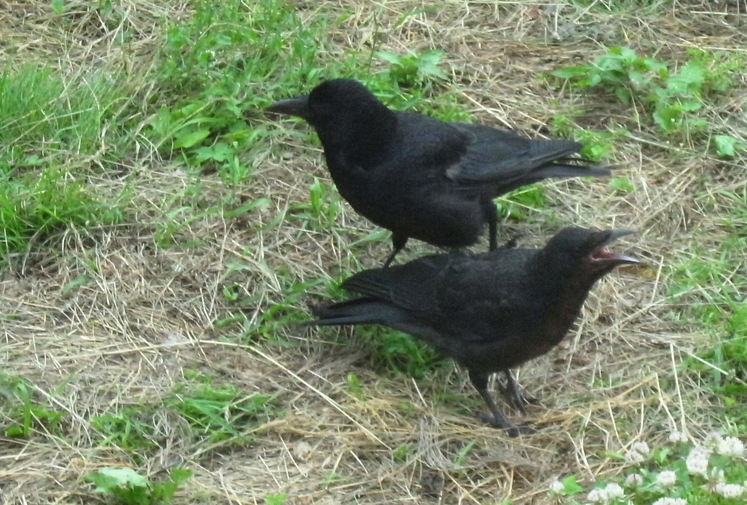 巣外育雛が7月に入ってくると,なわばりが緩くなり,隣のハシブトガラスファミリーがボソ01のなわばりにふつうに入ってくる。 この場合,両者は対峙する格好になり,また小競り合いが見られる。 そして子どもも,これにだんだんと参加していくようになる。 こういうことを含め,子どもはなわばりをもつとはどういうことかを学習していく。