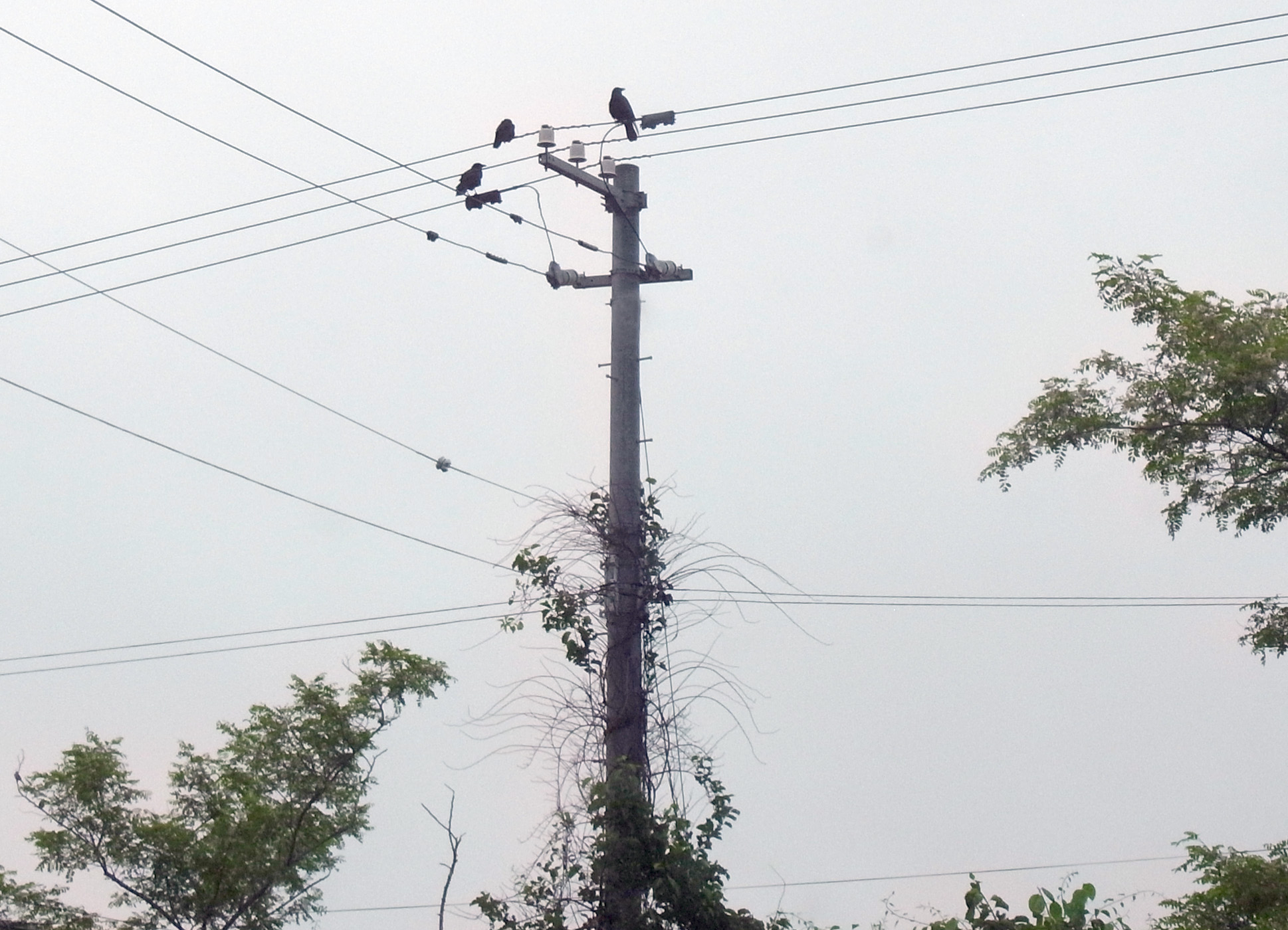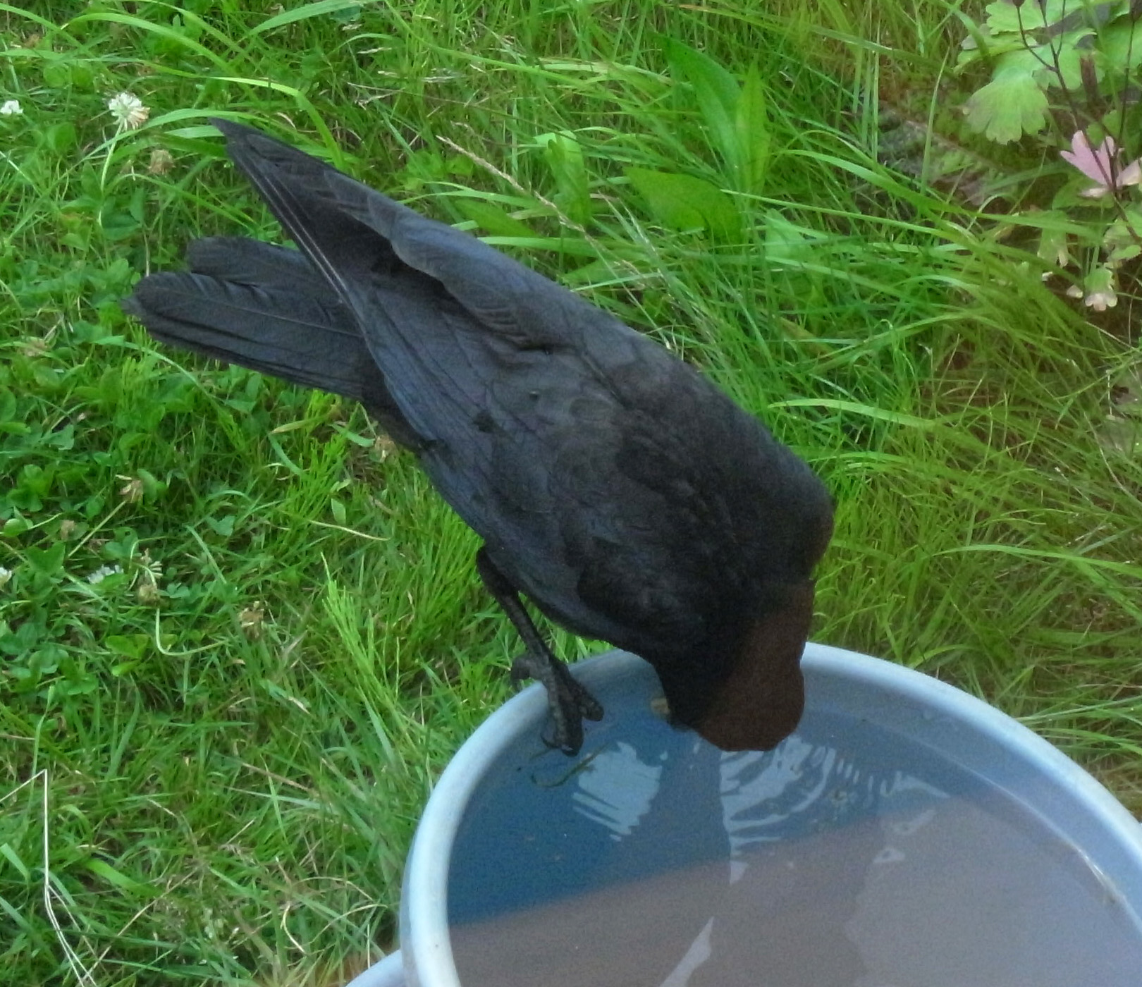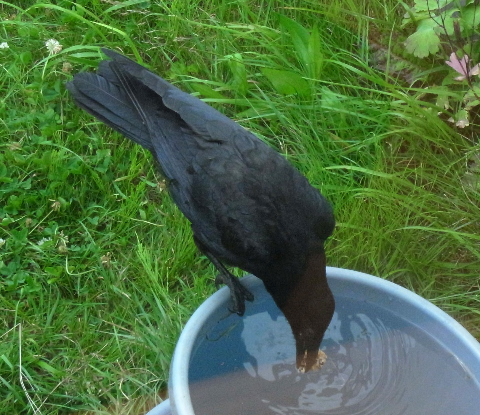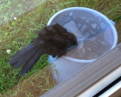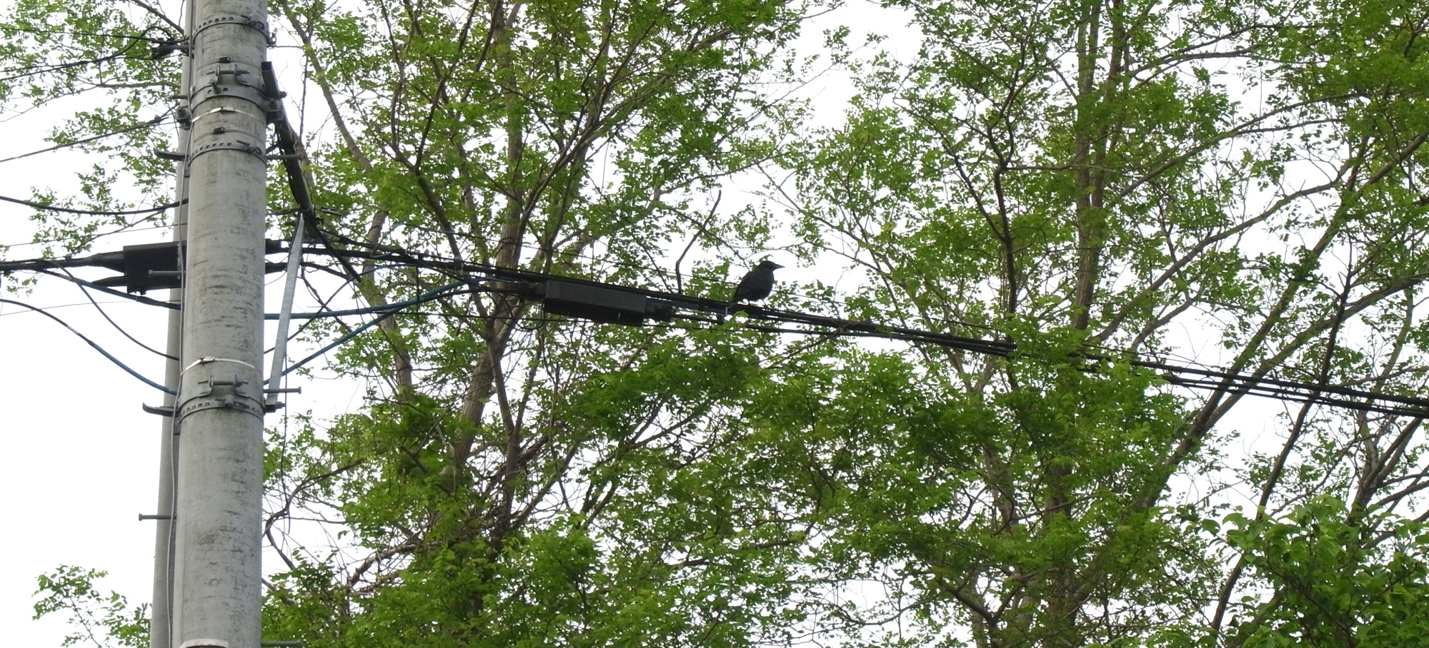 巣外育雛が7月に入ってくると,なわばりが緩くなり,隣のハシブトガラスファミリーがボソ01のなわばりにふつうに入ってくる。 この場合,両者は対峙する格好になり,また小競り合いが見られる。 そして子どもも,これにだんだんと参加していくようになる。 こういうことを含め,子どもはなわばりをもつとはどういうことかを学習していく。