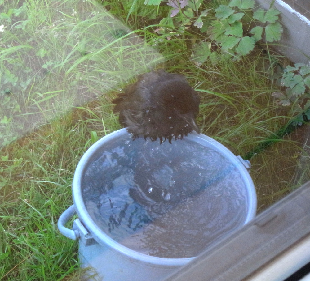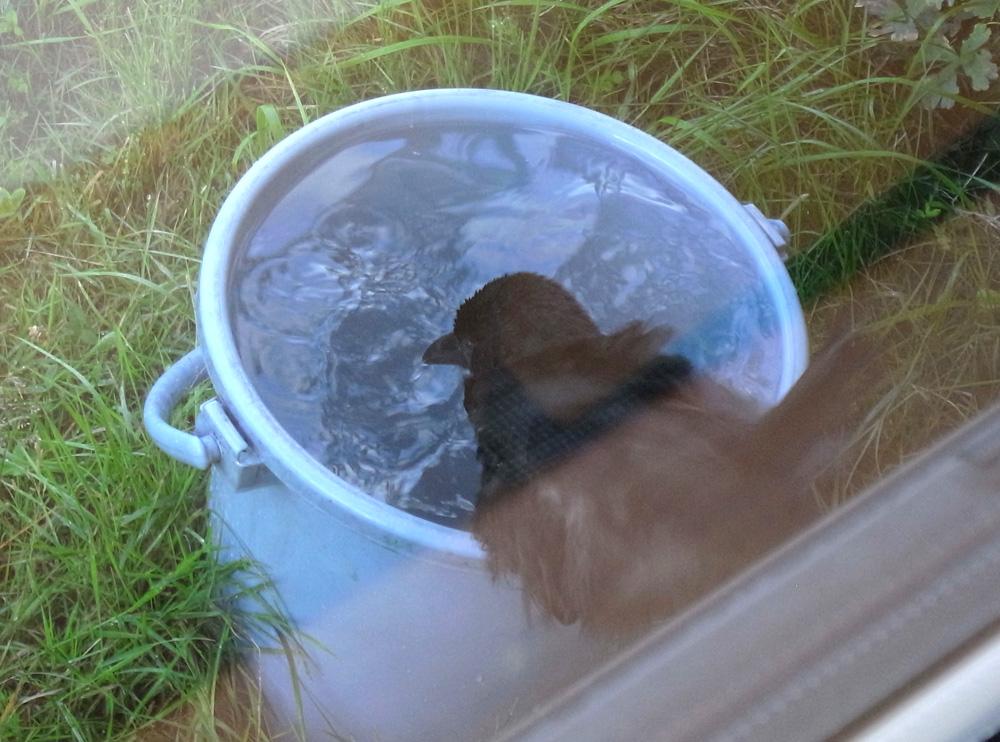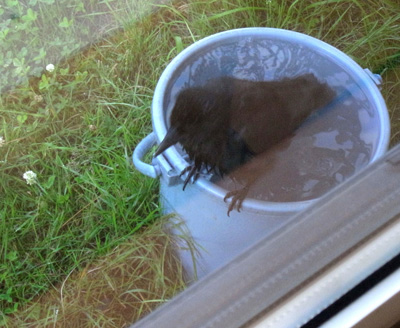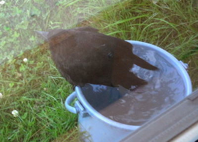 巣外育雛では,<給餌減らし>の方法で,子どもを自分で餌を採ることに仕向ける。 |