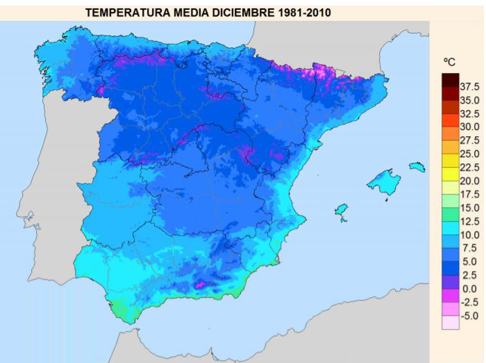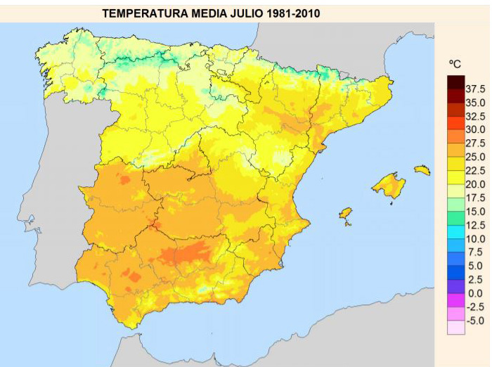 Maps Spaing : Spain temperature map