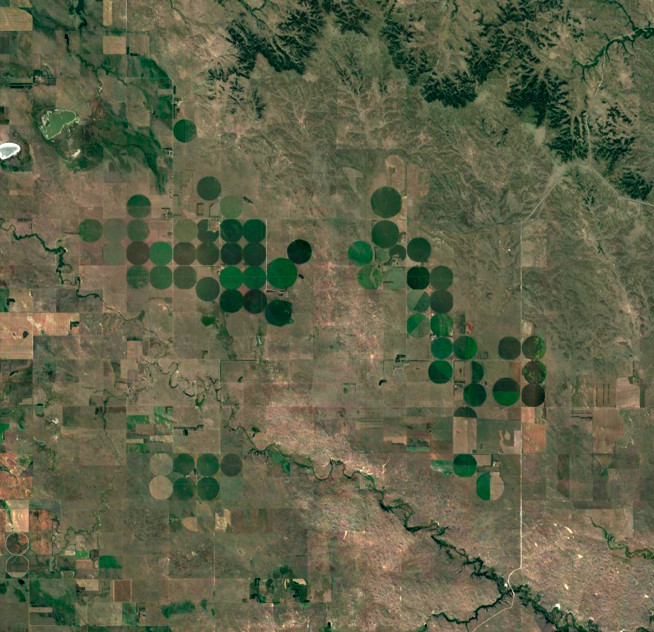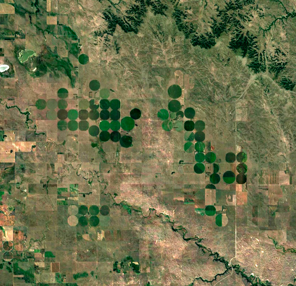 水は,地下から汲み上げる。 乾燥地帯なのだが,西のロッキー山脈の雪解け水が,長い時間をかけてこの一帯の地下水をつくっている。 その地下水は,無尽ではない。 取水井戸は,水が取れなくなったら,さらに深くする。 この場合,500m くらいが限度になる。 そうなったら,その耕地は放棄することになる。 そして,別の耕地の開拓に向かうというわけである。 乾燥気候の日照は,裸の耕作放棄地を乾燥させる。 そこは植物の生えないところになる。 こうして,そこ一帯はサバク化する。 アメリカ西部で農業をするとは,乾燥裸地のサバクをつぎつぎとつくっていくことなのである。 サバクは,たまたま雨が降っても,恵みの雨とはならない。 地中に浸み入った水は,蒸発する。 このとき,地中の塩類を上方に吸い上げる。 そこは塩類が濃くなっていく。 そしてこうなると,水を引いてきても植物は育たない。 なぜか。 植物が水を吸うのは,細胞液が細胞の外の水より濃い (溶質濃度が高い) ためである。 水は溶質濃度の低い方から高い方へ移動する。 この物理のため,濃い塩水に曝された植物は,細胞の内から外に水が移動する。 こうして死んでしまうのである。 カリフォルニア州デスバレーの塩平原は,このタイプのサバク化の極みを示している。