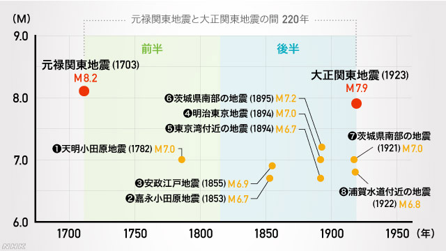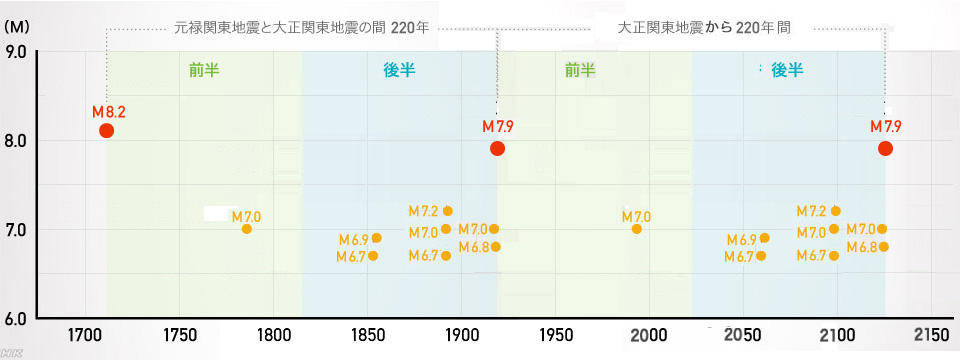関東地震のこれまでの発生は: