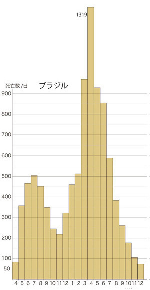 | ブラジル | 2.1105 | 619249 | 293413 | 74 | 106 | 177 | 261 | 383 | 589 | 854 | 928 | 1319 | 969 | 512 | 460 | |