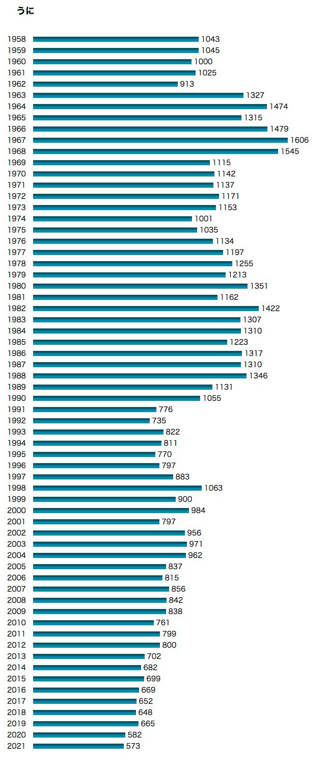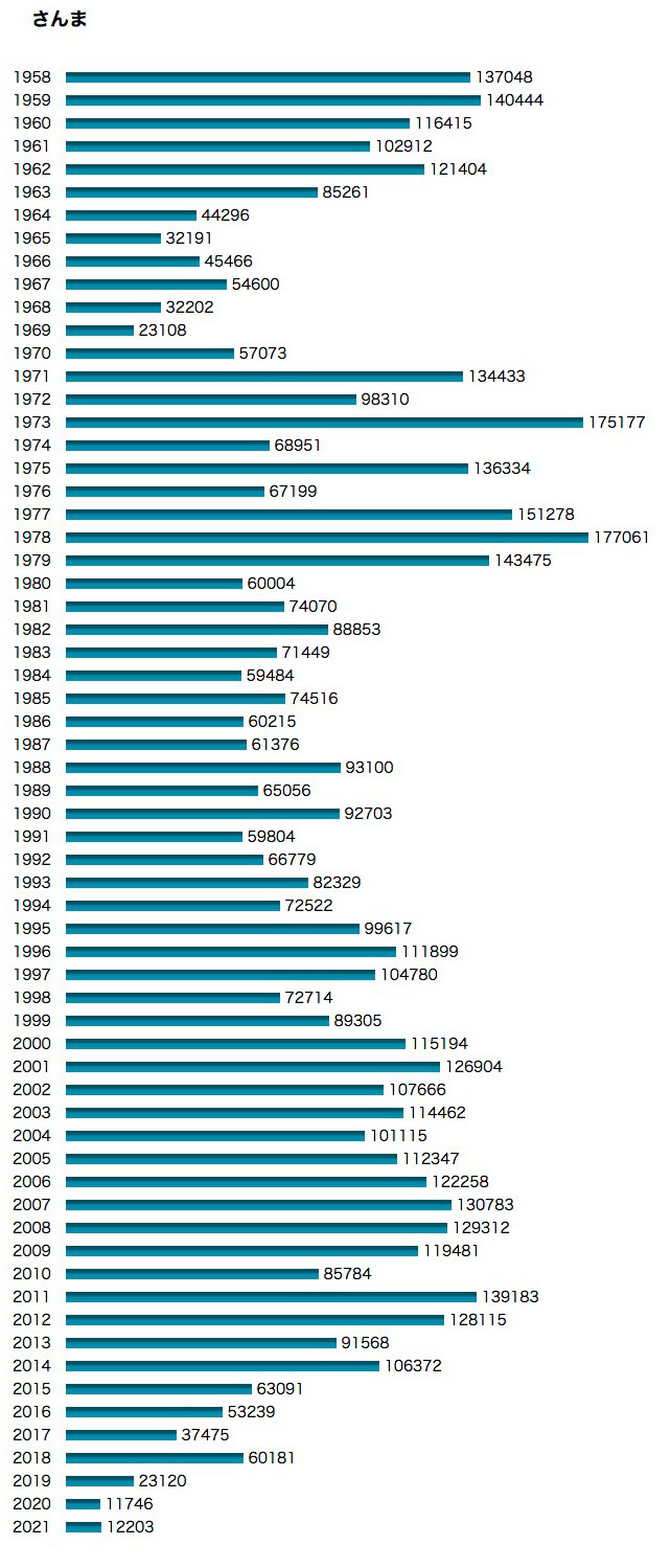 『2021年 北海道水産現勢』「累年」