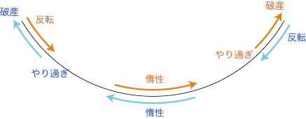2゜忘却 (世代/担当交替) ![]() 実際,「二値思考」により「コレでなければアレ,アレでなければコレ」になり,「忘却 (世代/担当交替)」により「前に失敗した道を繰り返す」になる。 商品経済と聖域の接近・離反の振り子運動は,規制に関する緩和対厳格化の二値であり,やはり失敗忘却が要素になっている。 振り子運動は,いたるところで見出される: 振り子運動が起こりやすいのは,「二値思考」と「忘却」という人間の特性が自ずと導くところだからである。 ──また,つぎのような解釈も立つ: