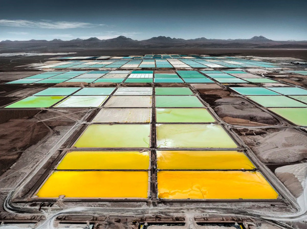| リチウム化合物を含む塩湖かん水を天日干しして,リチウム化合物を残す。 |