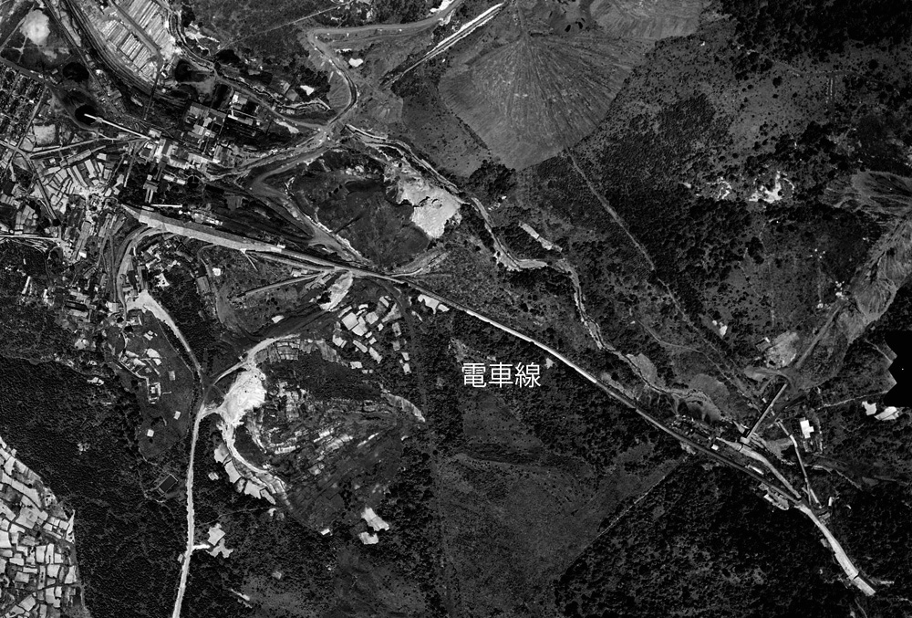 ホームへ出る。 東区,西区方面行きの人車が,長蛇の如く狭いプラットホームを挟んで並んでいる。 バタバタと腕木を外して乗り込もうとする人,20数輛の人車には,ぎっしり人が乗って発車を今や遅しと待っている。 午前7時,電車のサイレンが高らかに鳴り渡る。 と同時にゴトン,ゴトン,ゴトンと人車はひとゆれしてゆるやかに動き出した。 1番方入坑者を乗せた人車は,今ぞ地底 600 M,延長 8700 M の坑内へと一路驀進する。 赤いテールライトが次第に遠ざかる。