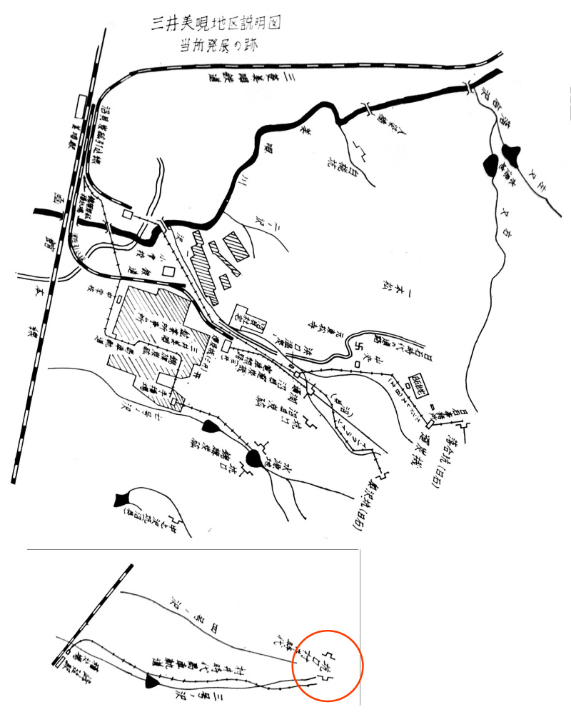三号の沢に沿うたもので,当所の元技師浅沼英二郎氏の言によれば,これは「材井鉱業時代」につけられた馬搬トロッコ用軌道跡であるという。