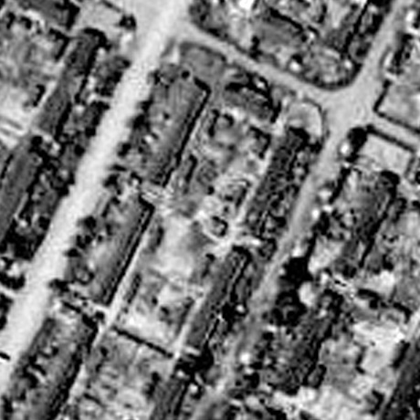 つぎは,先の三井美唄空中写真の鉱員住宅地区を拡大したものであり,黒田 (1936) が述べている通りであることがわかる: