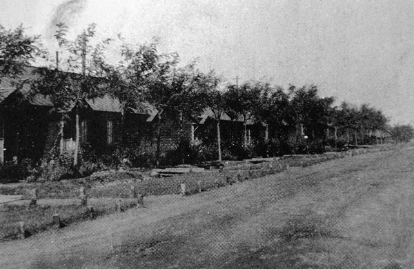 各戸は,黒田 (1936) が書いているように,自分の敷地を畑づくりに使った。 さらには,小屋をつくってニワトリやウサギを飼ったりした。 また,物干しが最初からついていて,秋はどこの戸もダイコン干しになる。 昔の北海道は,冬は野菜の無い季節だったので,野菜の保存食をつくるのはアタリマエだったのである。 大根・白菜は,会社が主に岩見沢から一括して調達し,各戸に馬車で配給した。 ちなみに,各戸の燃料である石炭・薪も,馬車で配給されるものであった。 棟には,石炭を入れる小屋と,薪を積む屋内スペースが備えられていた。 社外者は,三井美唄の住宅域に入って店舗・事務所等を構えることはできない。 彼らの圏域は,栄町である (上の空中写真で赤色で示したところ)。 住宅地に入ってくるのは豆腐・鶏卵・パン売りとか雑品屋 (修繕・廃品回収) であり,みな栄町住人か近くの農家である。(唯一の例外が,富山の薬売り。) 押し売りや物乞い等が入って来ないのは,会社側で取り締まっていたことになる。 その署は, 「詰所」(三井美唄では「外勤」と呼んでいた) である。