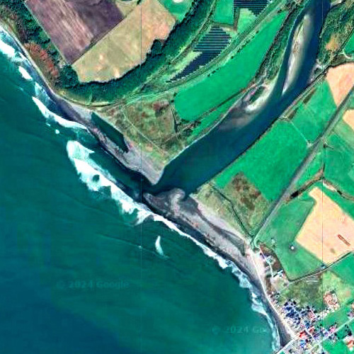 その流れは,土石の堆積と相互作用する。 こうして,流れの向きは一定しない。 また,増水すると,堆積した土石が海に押し出され,河口の形が大きく変化する。 そして以上に伴い,沙流浜の形・面積が変化する。 |