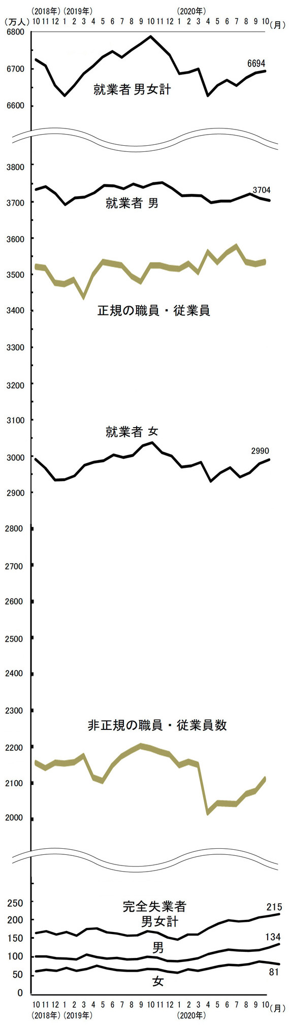 | Up | 就業者数の推移 (2020年10月分まで) | 作成: 2020-12-03 更新: 2021-03-16 |