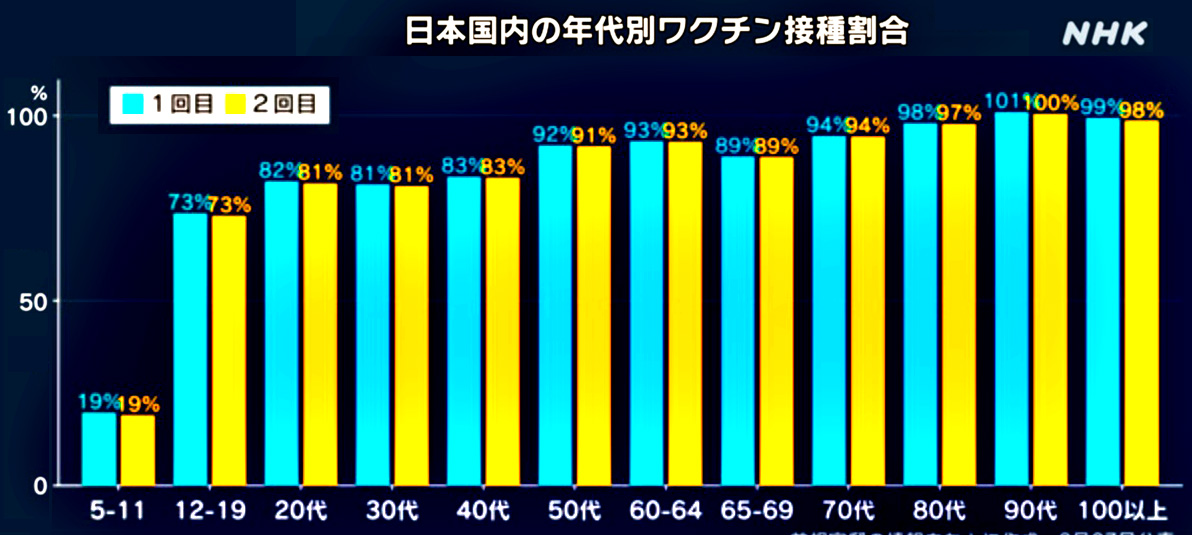 「新型コロナ」は,最初から「ただの風邪」だったのである。 「新型コロナ」を「コロナ禍」にしたのは,メディアである。 メディアは,「新型コロナ」をパンデミックにしてひとの恐怖心を煽り,「馬鹿な戦争」へと進ませた。 「コロナ禍」は「風評被害」であり,メディアがこの風評をつくった。 メディアは,「馬鹿な戦争」のA級戦犯である。 「新型コロナ」がただの風邪であることは,はじめから見えていた。 感染・死亡の程度から,インフルエンザ並みであることがはっきり見えていたのである。 しかし,経験値の低い者と,自分で考えることをしない者が,メディアの煽動に乗ることになった。 そして,このような者たちが,大衆のほとんどだったのである。 「新型コロナ」は,「馬鹿な戦争」が繰り返される理由を見せてくれた。 「新型コロナ」をパンデミックだと煽るメディアは,ワクチン接種を煽動した。 ひとは,簡単に煽動された。 風邪は「体を布団で暖かくくるみ,安静にして,滋養をつける」で治すものなのだが,いまこれを知る者のほとんどいないことが,これでわかった。 医事・薬事利権は,「医者と薬に頼る」をひとに洗脳してきた。 「医者と薬に頼る」に洗脳された者は,医者・薬とは何かを考えることを知らない。 メディアの煽動に乗った者は,どのくらいか? ほとんどであることを,つぎのグラフは示す。 これが,「馬鹿な戦争」の土壌である。 「馬鹿な戦争」は,いつでも簡単に起こるというわけである。