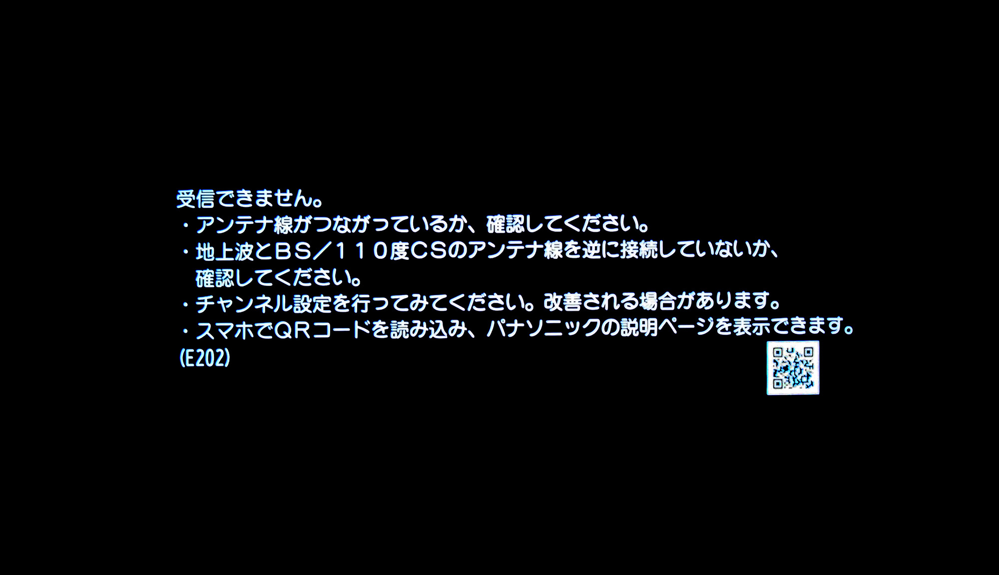 ブラックアウトタイプであるから,「アンテナの向きあるいはかケーブルの接続が正しくない」が原因ではない
