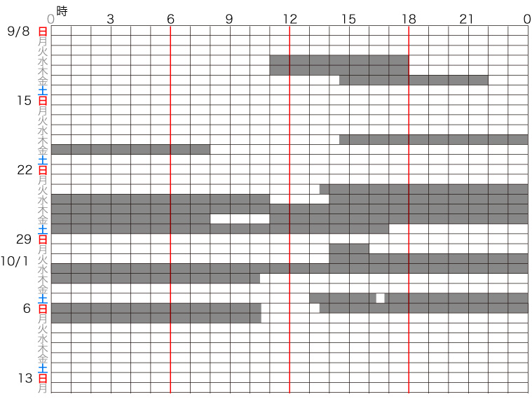 しかしこの度,1か月を超えて時間帯の記録をとったことで,時間帯に規則性のないことがわかった。