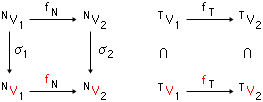 - G1とG2の間の(文生成システムの)同型f=(fN,fT)