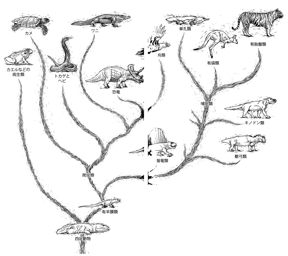 ※単弓類の系統は哺乳類以外は全て絶滅した。