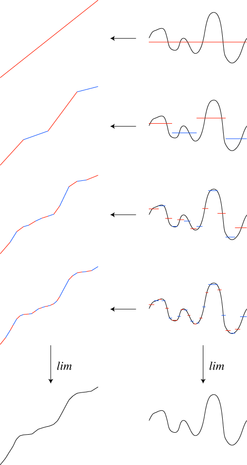 時間を細かく区切り近似の精度を増していくことで,求めるグラフの十分な形が得られる。