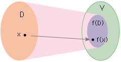 - D の部分集合 M に対し,集合 { f(x) ∈ V | x ∈ M } を f(M) と書きます。