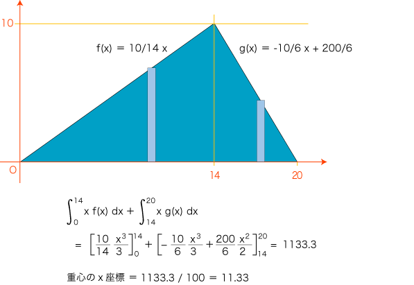 三角形の重心を,積分計算で求める