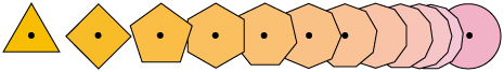 そしてこの意味で,円は正n角形の極限 (n→ ∞ ) と見ることができます: